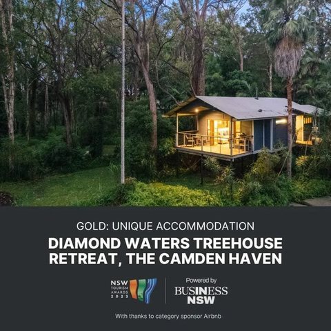 Diamond Waters Treehouse Retreat is a luxury accommodation retreat featuring two eco-friendly treehouses tucked away in a tranquil five acre of property on the Camden Haven River and only one km from Laurieton. The Retreat is Advanced Ecotourism and Climate Action Business Accredited and its new wedding and events business has been Strive4Sustainability Certified.
